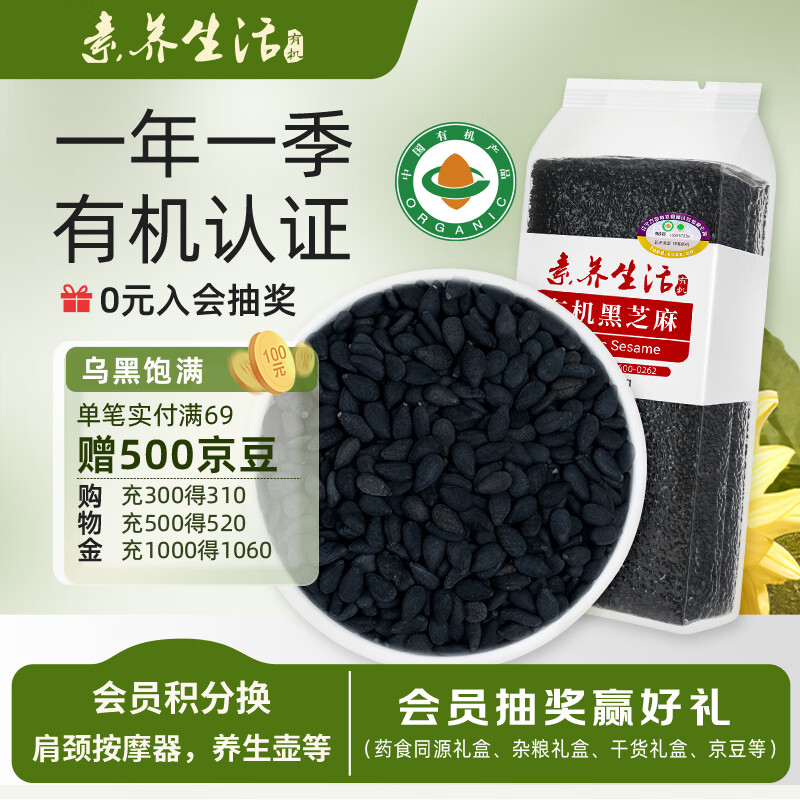 素养生活有机黑芝麻400g 芝麻 生黑芝麻 黑芝麻糊原料 无添加 五谷杂粮