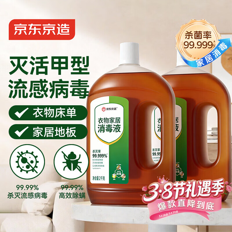 京东京造 消毒液2kg×2瓶 衣物消毒水家居宠物环境除菌除螨杀菌除菌液松香