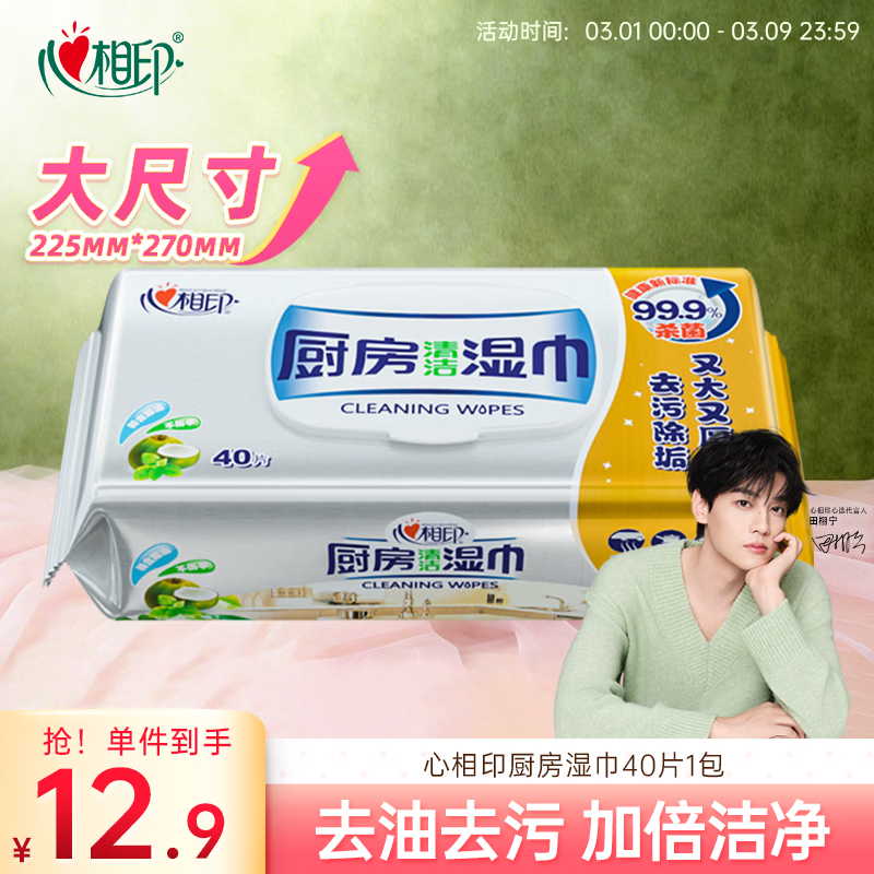 心相印厨房湿巾 40抽 金装 强效去污去油厨房专用湿纸巾 新老包装交替发