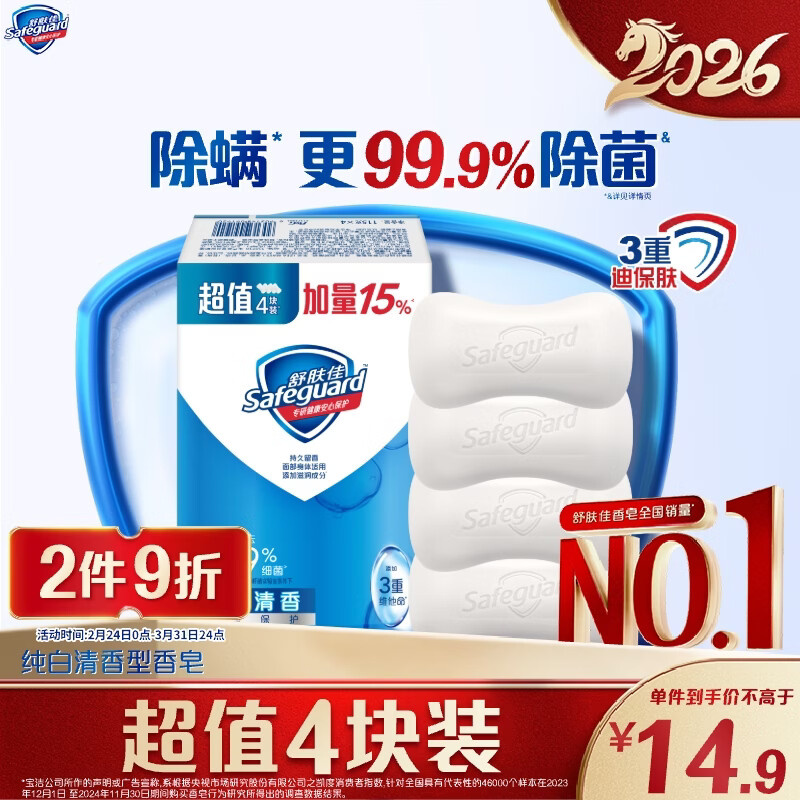 舒肤佳香皂 纯白清香115g*4块皂 99.9%除菌 洗澡沐浴皂肥皂新旧包装随机