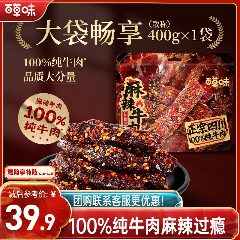 百草味麻辣牛肉散称400g 休闲肉类零食夜宵小吃解馋零食