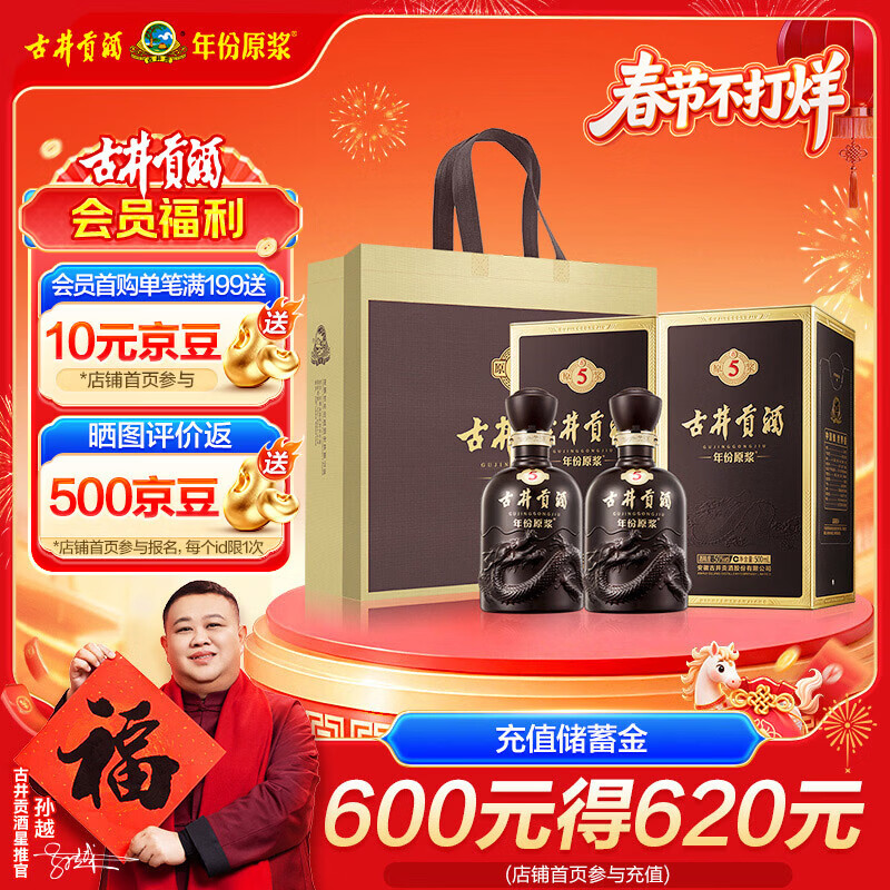 古井贡酒 年份原浆古5 浓香型白酒 50度 500ml*2瓶 双瓶装