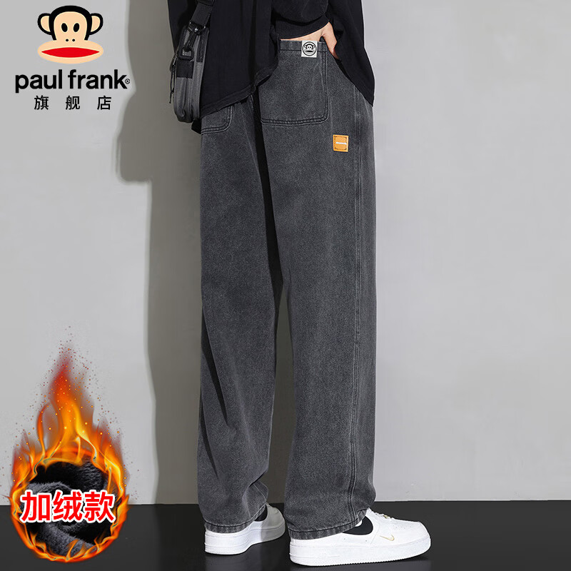 大嘴猴(paul frank)牛仔裤男秋冬季美式休闲裤男士宽松阔腿裤子男裤 黑色加绒 XL