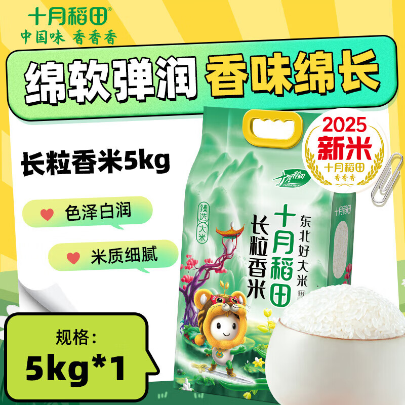 十月稻田【2025年新米】长粒香米5kg 东北大米10斤 粳米 1袋