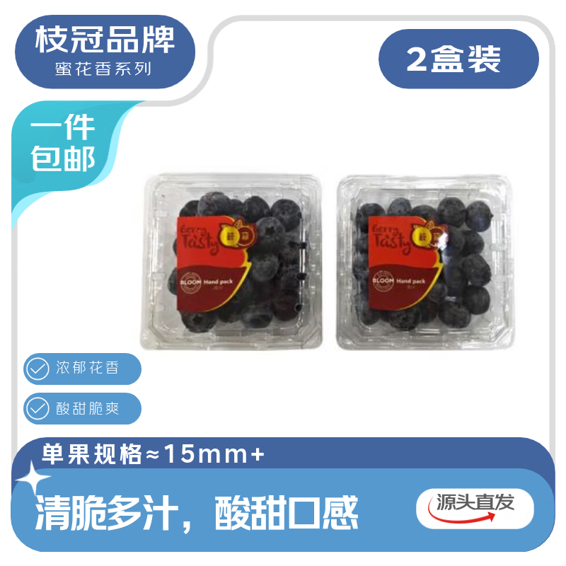 枝冠【蜜花香】云南蓝莓15mm+ 2盒装 约125g/盒 源头直发 包邮