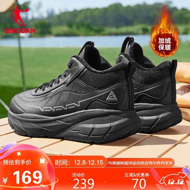 乔丹QIAODAN加绒运动鞋攀境户外减震防寒棉鞋保暖加毛男鞋