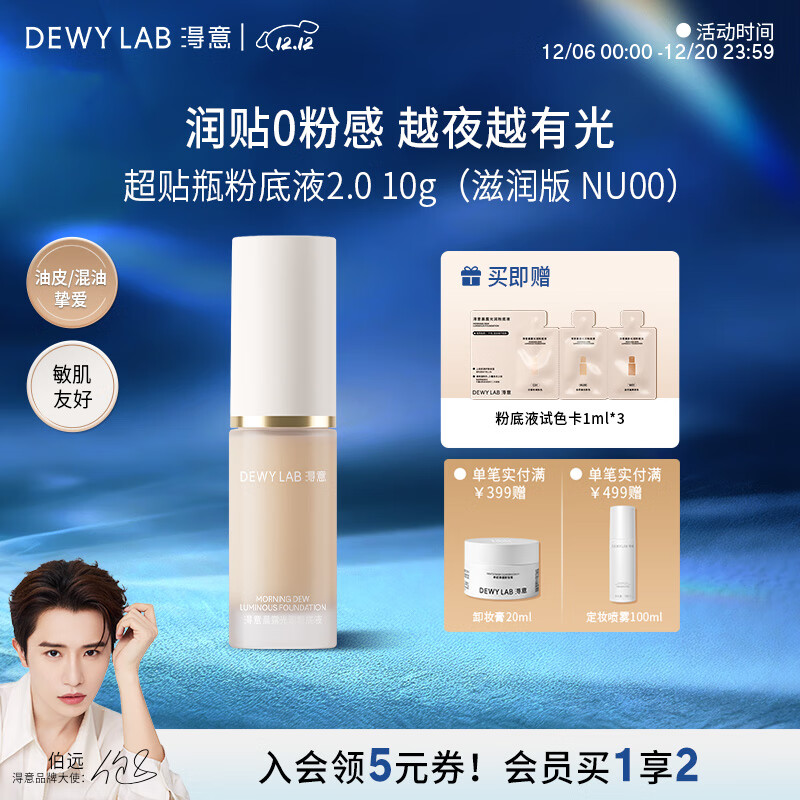 淂意【升级2.0】超贴瓶晨露粉底液得意遮瑕持久保湿提亮干皮不脱妆