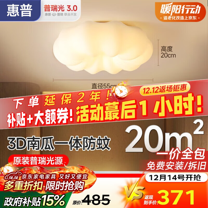 惠普卧室云朵led吸顶灯奶油风南瓜房间儿童房普瑞护眼中山灯具包安装