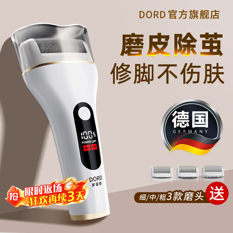 多雷德德国品牌电动磨脚器去死皮磨脚后跟电动修脚神器去死皮打磨器去脚部老茧硬皮脚皮刮脚专用大功率 磨脚器(3个磨头)