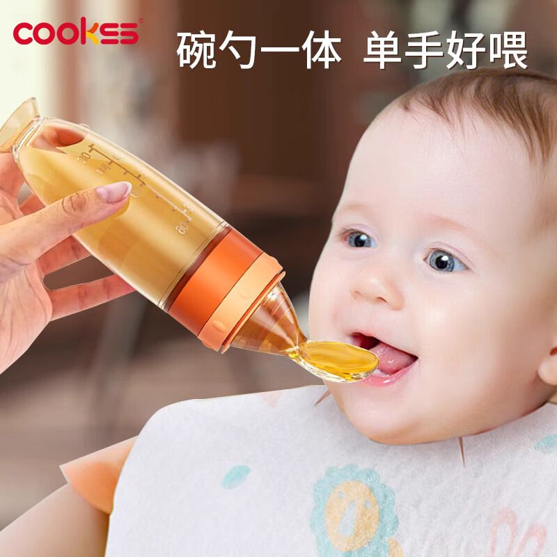 COOKSS婴儿米糊软勺奶瓶挤压式喂养硅胶宝宝辅食工具米粉喂食神器活力橙