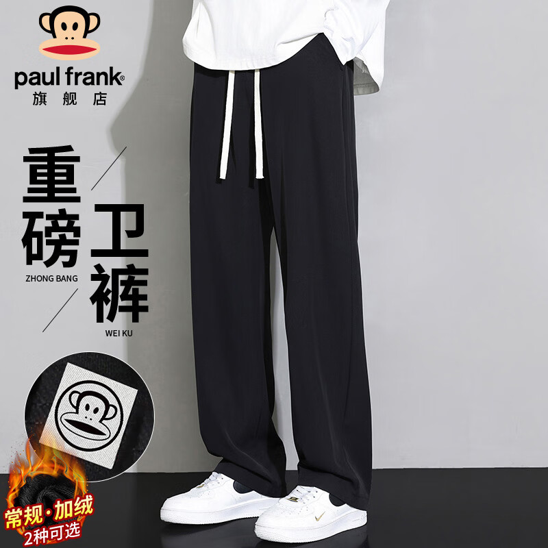 大嘴猴(paul frank)休闲裤男士宽松裤子男冬季运动卫裤男裤垂感阔腿裤 黑色 XL