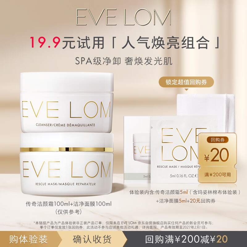 EVE LOM洁颜霜5ml+洁净面膜5ml 人气焕亮CP体验装【返20元券】