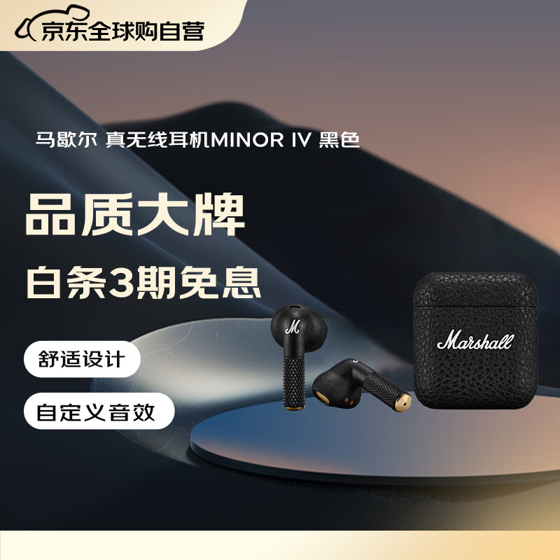 马歇尔(Marshall)MINOR IV耳机真无线重低音防水4代无线蓝牙长续航TWS耳麦 送礼 礼物 minor4 黑色