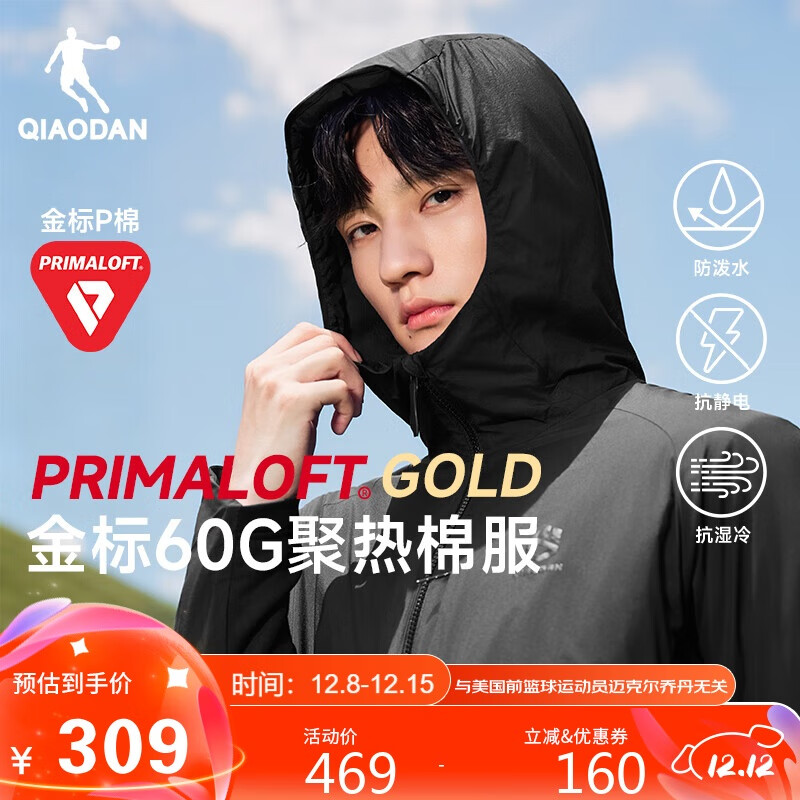 乔丹山神Primaloft金标P棉服男外套秋冬季保暖连帽户外风衣男冲锋夹克