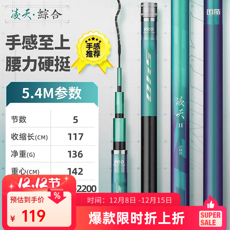 创威凌天二代钓鱼竿手杆超轻超硬碳素鲤鱼竿鲫鱼竿台钓竿 5.4m小综合
