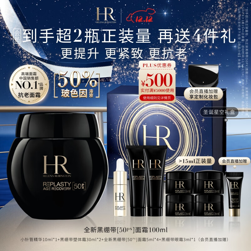 赫莲娜HR全新黑绷带50PX面霜100ml抗皱紧致玻色因护肤品化妆品礼盒礼物