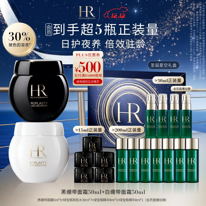 赫莲娜HR黑绷带面霜+白绷带保湿修护护肤品套装化妆品圣诞礼物送女友