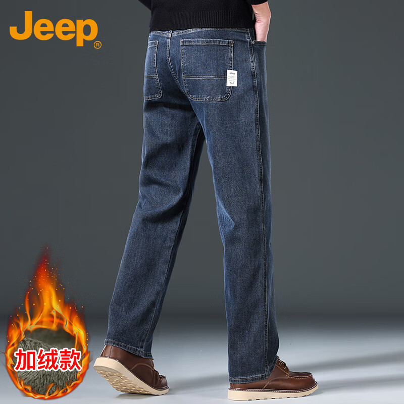 JEEP吉普牛仔裤男秋冬季直筒宽松休闲裤子商务复古男裤 蓝灰加绒 33