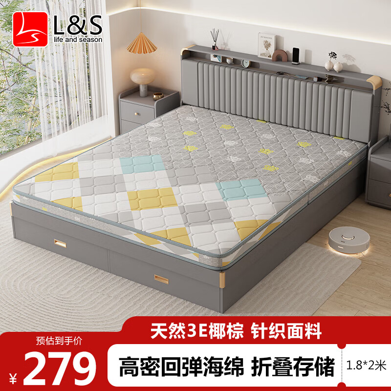 L&S椰棕床垫折叠硬棕垫榻榻米棕天然椰棕床垫5cm厚CD25 1.8*2米