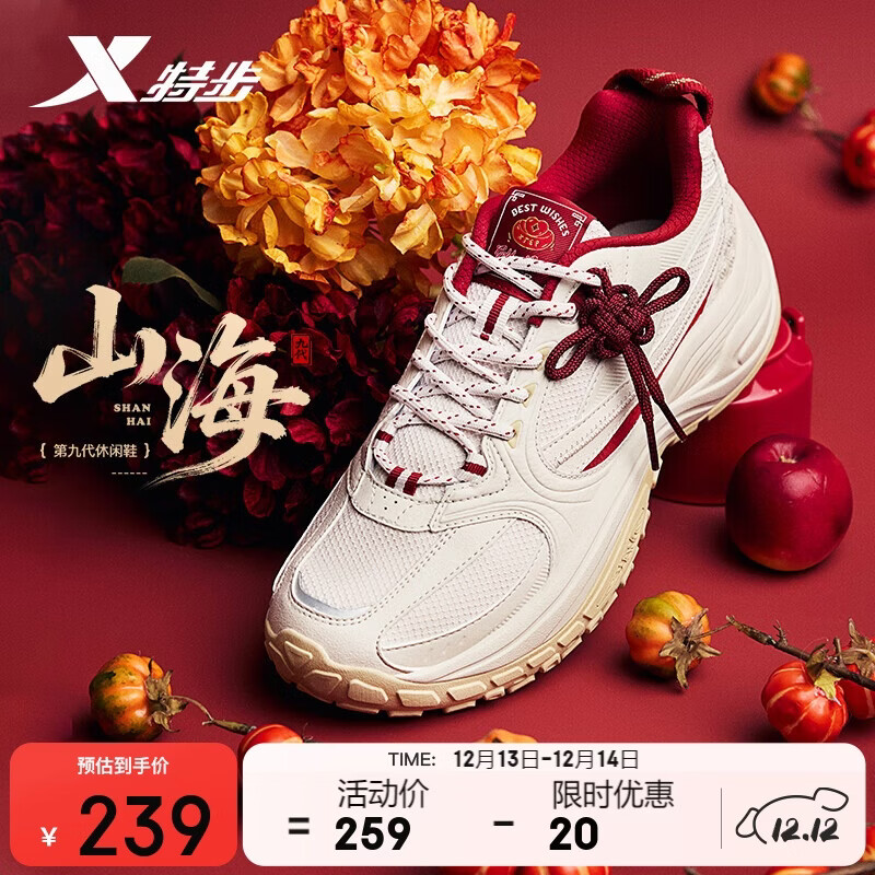 特步山海丨男鞋运动休闲鞋秋冬保暖增高老爹鞋防滑耐磨简约百搭