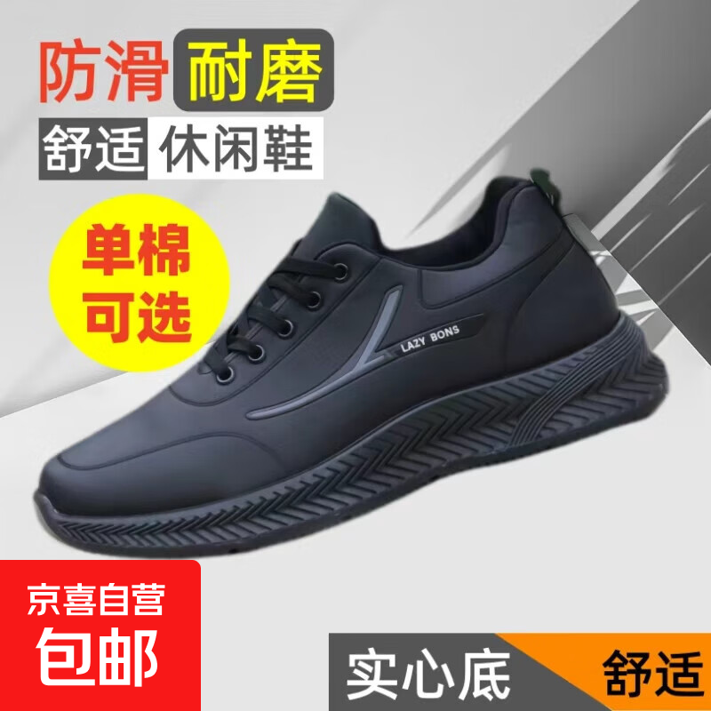 2025冬季新款男鞋皮面防水防滑工作男鞋百搭时尚休闲耐磨男士潮鞋 77077黑灰色 (热卖款) 42 标准运动码