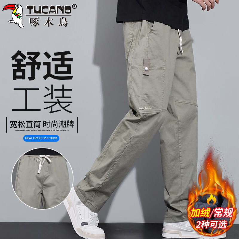 啄木鸟(TUCANO)裤子男秋冬季休闲裤男士高端美式工装裤宽松直筒百搭长裤 浅绿 XL