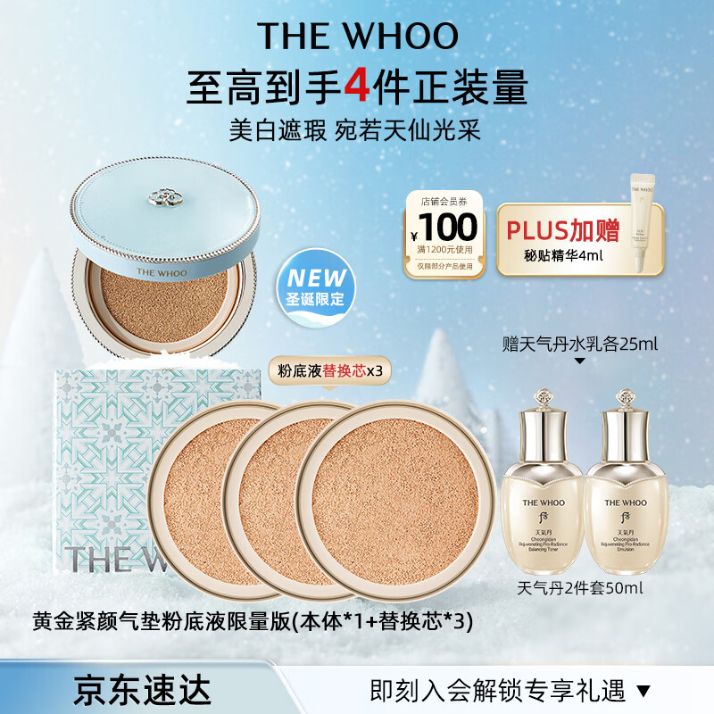 后Whoo黄金紧颜气垫粉底液限量SPF50+/PA+++防晒遮瑕持妆圣诞礼物