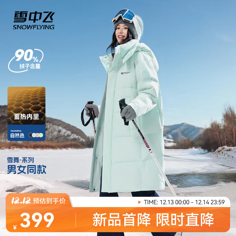 雪中飞2025冬新款羽绒服长款男女同款情侣款直筒户外休闲时尚保暖 冰川蓝|5338 M /165/88A