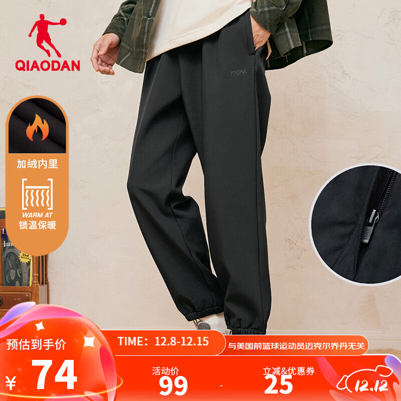 乔丹加绒运动裤男士休闲卫裤子男冬季保暖直筒束脚梭织长裤 黑色 丨束口拉链 XL