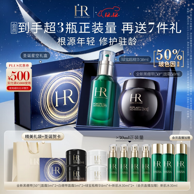 赫莲娜HR黑绷带面霜+绿宝瓶精华保湿化妆品套装护肤品圣诞礼物送女友