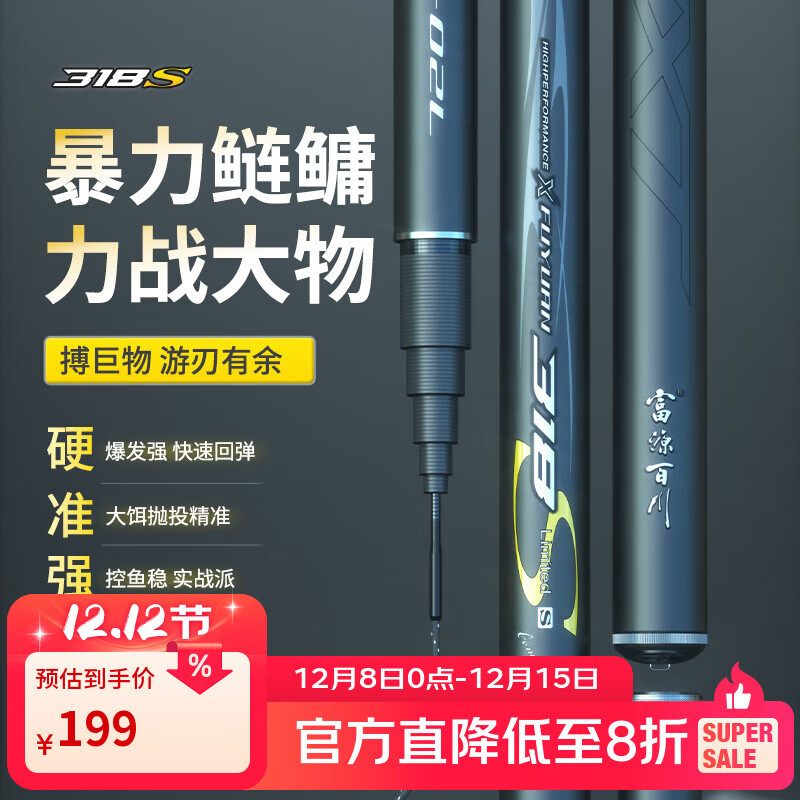 富源百川318S鲢鳙鱼竿手竿轻量钓鱼竿台钓手杆黑坑鱼杆大物杆巨物钓竿7.2m