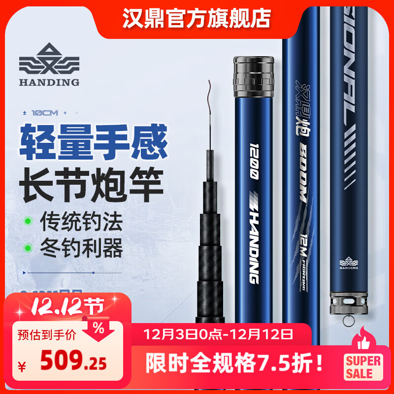 汉鼎炮竿传统钓长杆超硬钓鱼竿手杆大炮杆打窝竿10米13米钓鱼竿汉鼎炮 13m 【轻量长竿 一竿双稍】