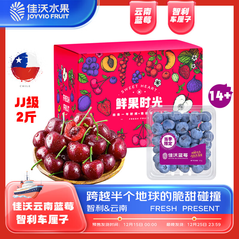 佳沃(JOYVIO)4盒14mm+云南蓝莓+2斤JJ级 智利车厘子组合礼盒装 新鲜水果