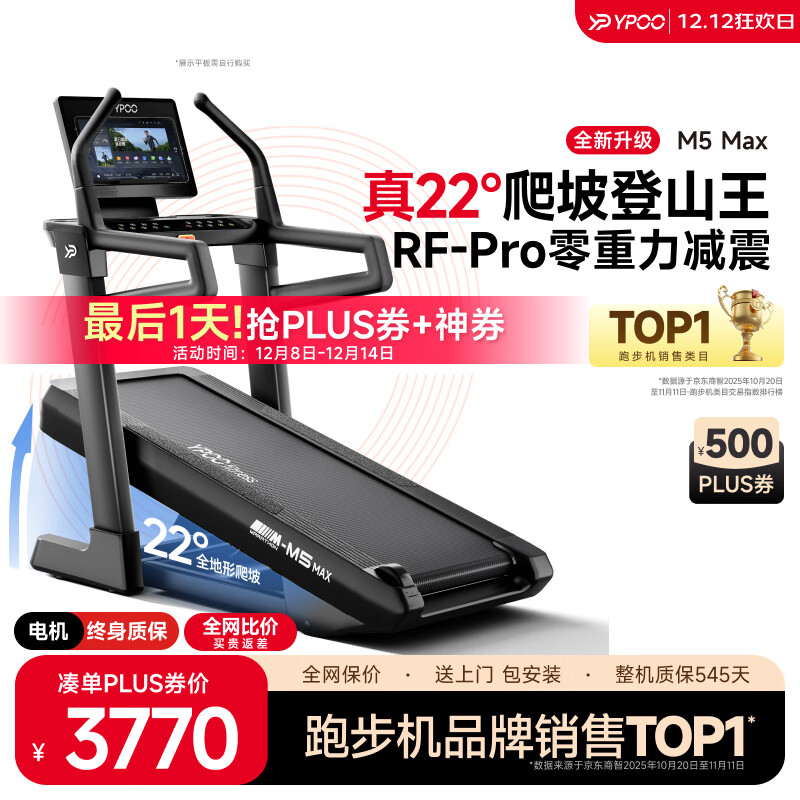 易跑YPOO马拉松跑步机家庭用爬坡度高端健身房减震智能运动器材M5 MAX 马拉松Ultra登山版-22°全地形大坡度/RF-P零重力减震