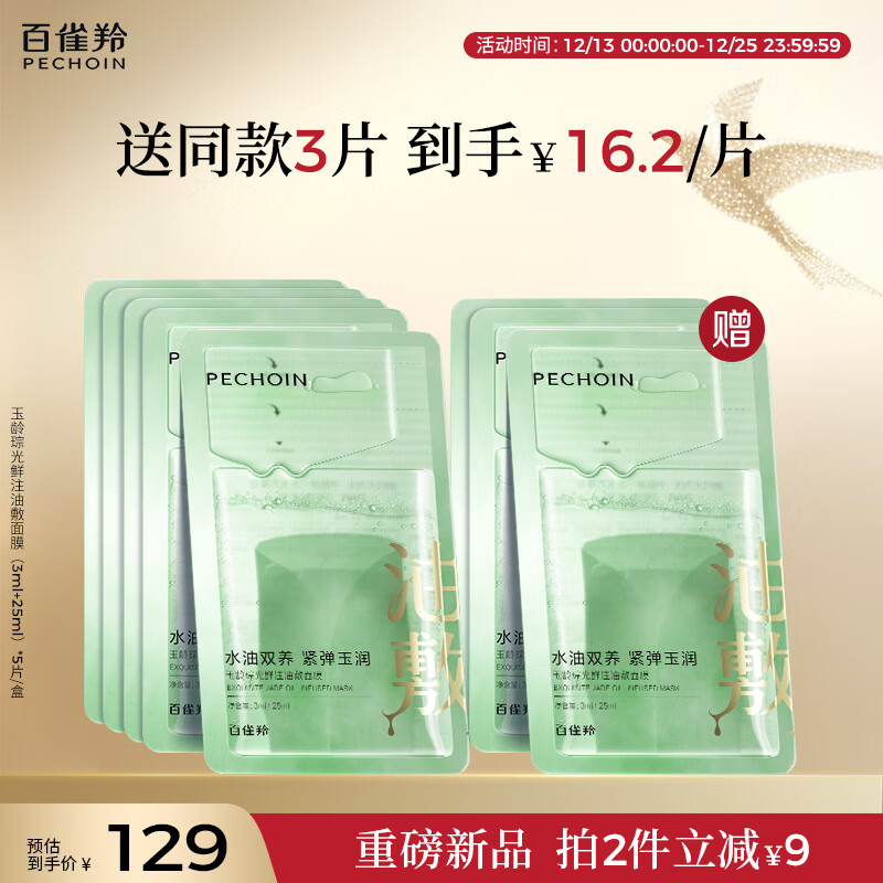 百雀羚(PECHOIN)玉龄琮光鲜注油敷面膜3ml+25ml 5片补水保湿圣诞礼物范冰冰同款