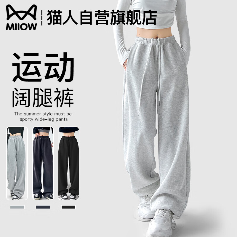 猫人美式复古口袋辣妹休闲春秋运动阔腿裤两穿卫裤直筒裤潮流百搭束脚