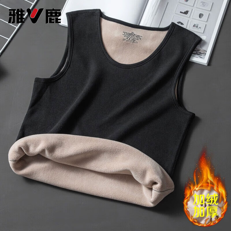 雅鹿男士保暖背心男冬季加绒加厚保暖马甲打底衫内穿冬季羽绒无袖坎肩 【加绒加厚】 2XL 【建议120-150斤】
