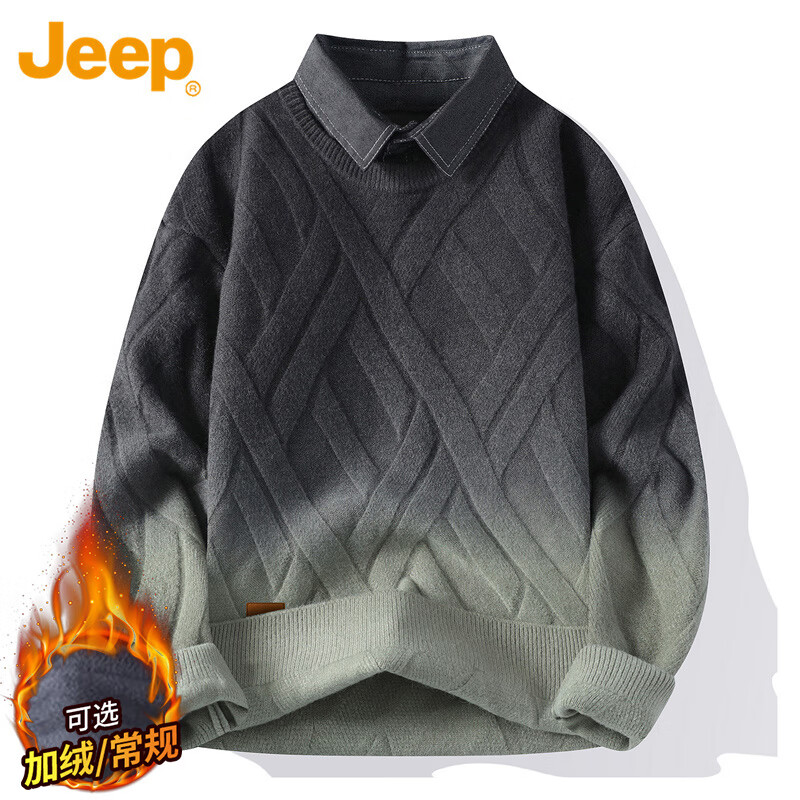 JEEP吉普毛衣男秋冬季衬衫领针织衫保暖上衣男装打底衫 绿色 XL