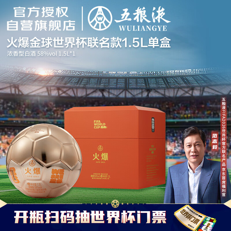 五粮液火爆金球 世界杯官方联名款 浓香型白酒 58度 1.5L 单瓶