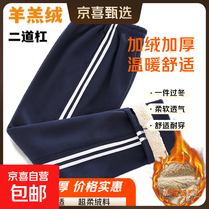 纯棉校服裤子藏蓝色冬季加绒加厚宽松休闲运动裤直筒校服裤 二杠白条藏蓝色羊羔绒 纯棉面料 32 (180) 170-180高135-160斤