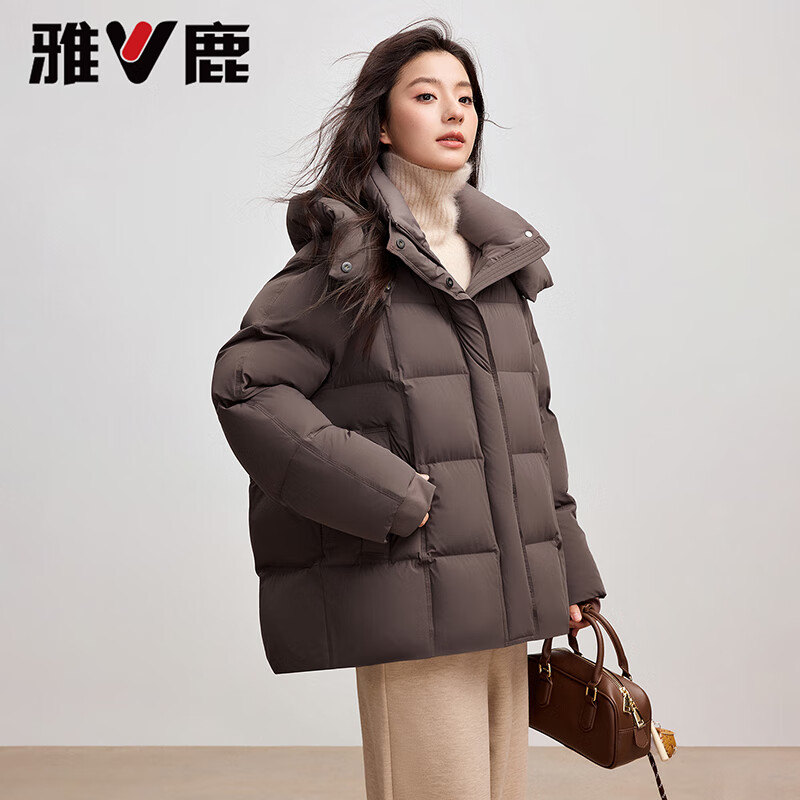 雅鹿羽绒服女2025冬季新款时尚简约短款百搭面包服小个子保暖休闲外套 咖色 L 建议120-140斤