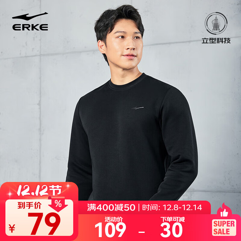 鸿星尔克卫衣男2025秋冬季新款立型科技休闲百搭套头衫运动上衣运动服长袖 正黑 XL