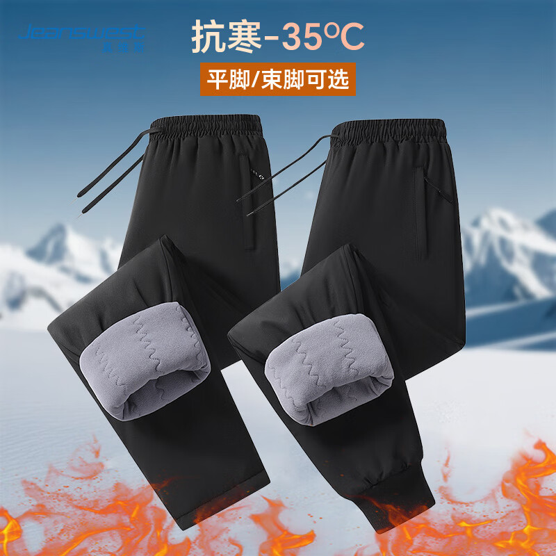 真维斯(JEANSWEST)加绒休闲裤男冬季羊羔绒加厚防风防寒束脚直筒长裤百搭裤子男士