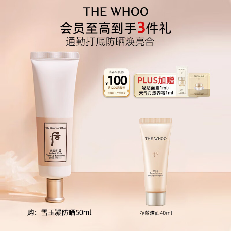 后Whoo雪玉凝光彩柔皙防晒乳50ml SPF50+/PA++++妆前隔离生日礼物