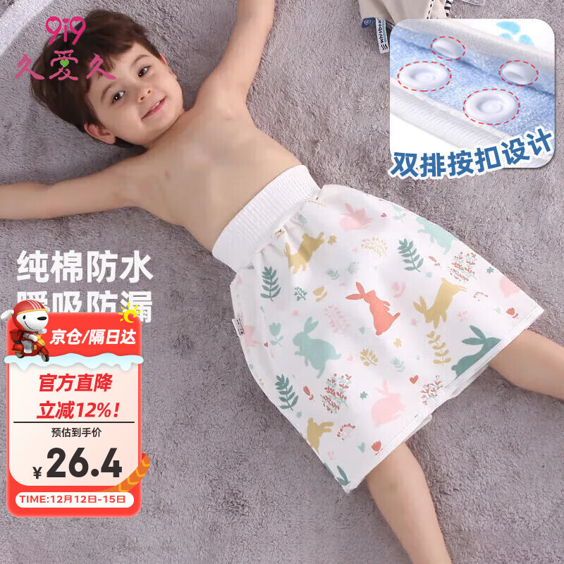 9i9宝宝隔尿裙可洗纯棉婴儿童高腰护肚防水透气尿垫防漏大号A126