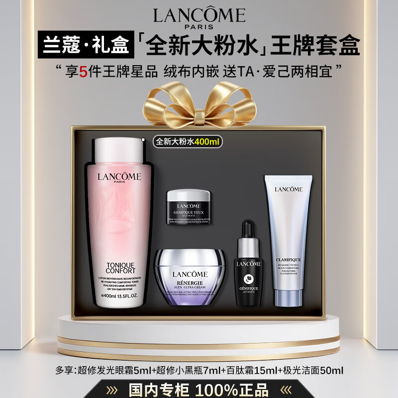 兰蔻(LANCOME)大粉水保湿补水舒缓褪红修护 爽肤水柔肤水护肤品礼盒礼物送女友 【王牌5件套礼盒】新版粉水