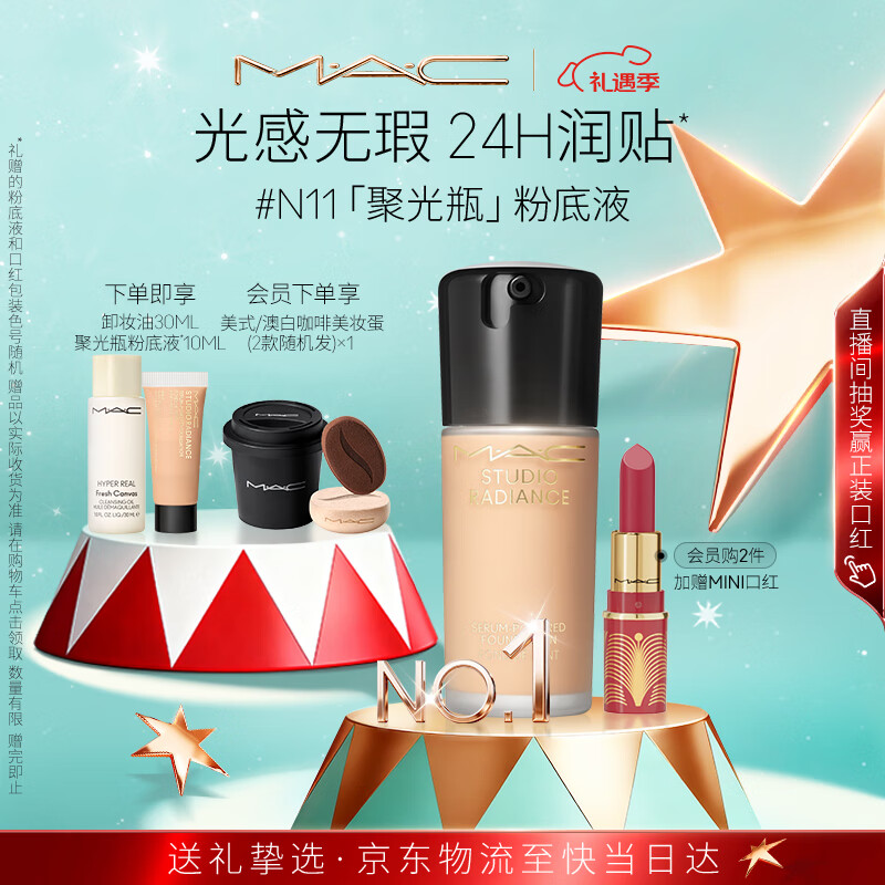 M.A.C魅可mac粉底液聚光瓶精华养肤保湿干皮遮瑕持#N11 圣诞礼物