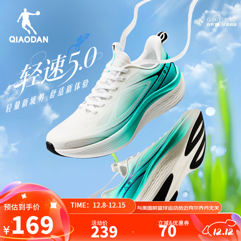 乔丹轻速5.0男跑步鞋冬季新款密网防风青少年运动鞋轻质舒适 乔丹白/蓝绿 42