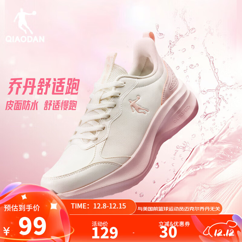 乔丹运动鞋女冬季新款跑步鞋减震运动鞋舒适经典潮流款妈妈鞋 象牙白/白桃粉 皮面防水 38