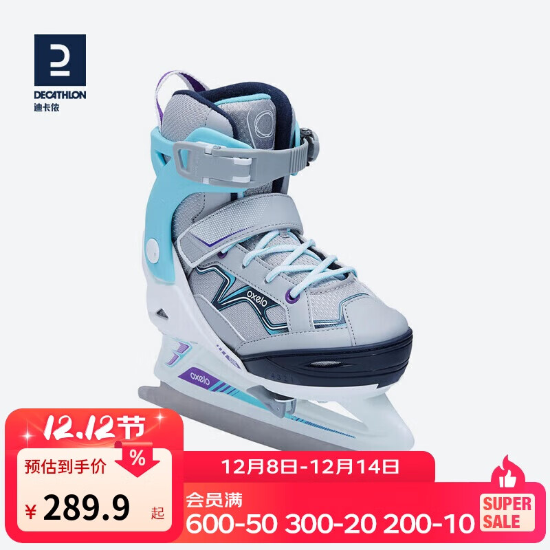 迪卡侬可调节滑冰鞋冰刀鞋冰鞋花刀花样冰刀鞋松石绿灰35~38码-2629504